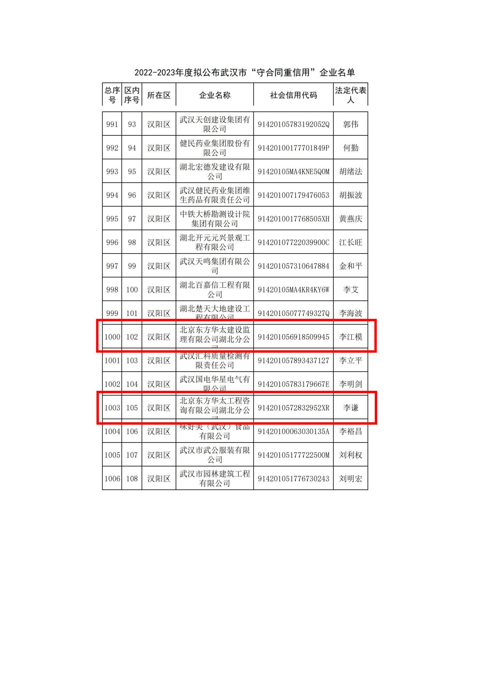 近日,武漢市市場(chǎng)監(jiān)督管理局、市信用辦聯(lián)合開展的“武漢市2022-2023年度‘守合同重信用’”企業(yè)名單已公布,東方華太公司憑借規(guī)范的合同管理體系和良好的社會(huì)信用,成功上榜。
